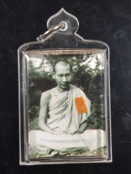 รูปภาพหลวงพ่อเกษม เขมโก หลังปั้มหมึก ติดจีวร ปี2518 ขนาด 1 นิ้ว เลี่ยมพร้อมใช้ #2