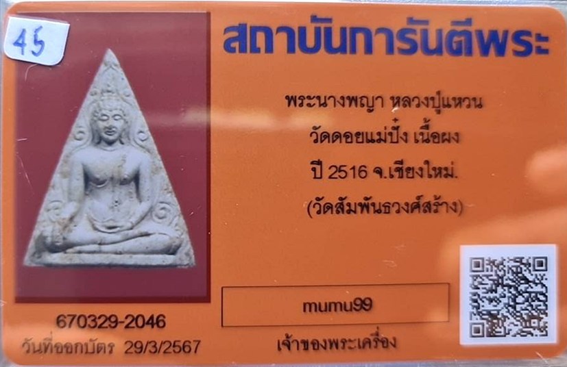 @## พระนางพญา.. ลป.แหวน วัดดอยแม่ปั๋ง จ.เชียงใหม่ (พิธีปลุกเสกใหญ่ใหญ่ วัดสัมพันธวงศ์ กทม.จัดสร้าง ) ปี2516 เนื้อผง พร้อมบัตรรับรอง สภาพสวยมาก รับประกันความแท้ตลอดชีพ พิธีปลุกเสกในวาระแรก ปี 2516 -วัต |