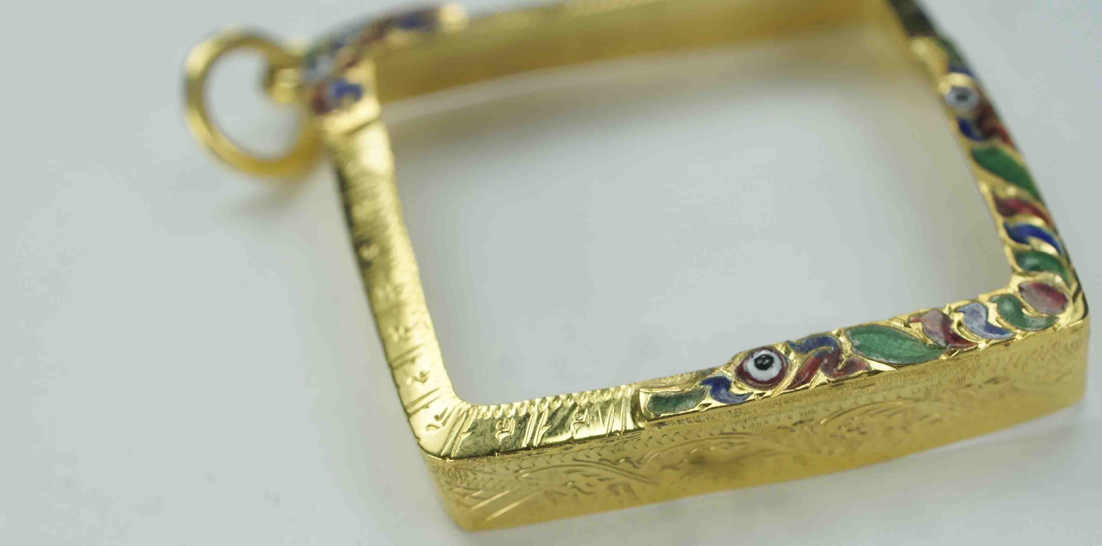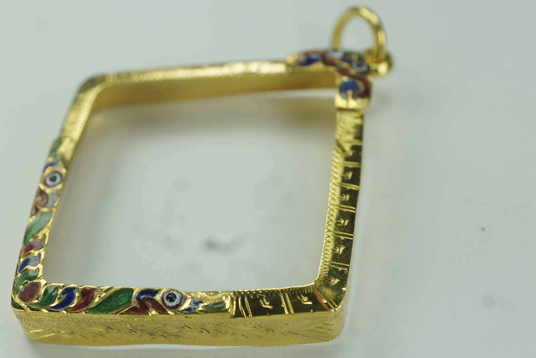 กรอบทองคำ ใส่เหรียญขาวหลาม ตัดกลมหลวงชุมพร หลวงปู่ทิม ยกซุ้ม หัวสิงห์ ลงยา แกะลายทั้งใบ งานขึ้นมือ น้ำหนัก 2.79 กรัม เปอร์เซ็นต์ทอง 65-70 เปอร์เซ็นต์ รับประกันตามกฏการันตีพระทุกข้อกำหนด ยินดีจัดส่งตรว