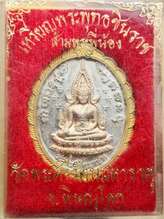 เหรียญพระพุทธชินราช สามพระพี่น้อง วัดพระศรีรัตนมหาธาตุวรมหาวิหาร จังหวัดพิษณุโลก อนุสรณ์สมโภชครบ 639 ปี เนื้อสามกษัตริย์ สวย พร้อมกล่องเดิม ปี2539 |