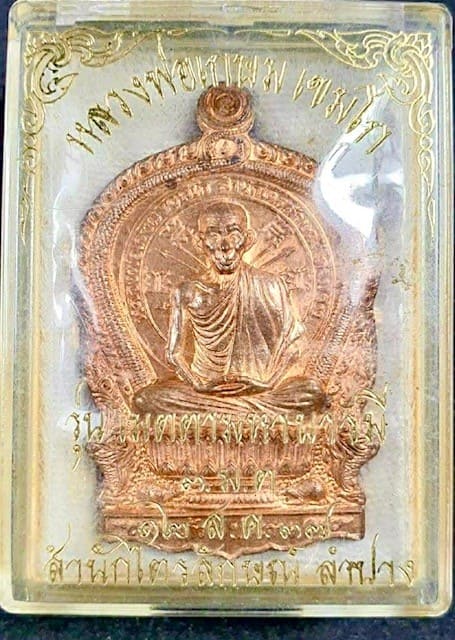 แรงต่อเนื่อง เหรียญหลวงพ่อเกษม เขมโก รุ่นนั่งพาน 3 มต. เนื้อทองแดง สวยสวย มาพร้อมกล่อง