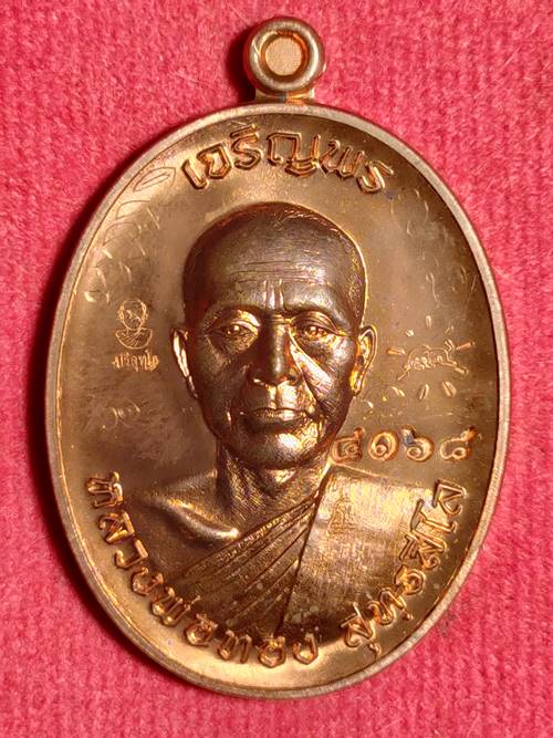 รุ่นแรกรุ่นเดียว เหรียญ เจริญพรบน หลวงพ่อทอง สุทธสีโล หลวงพ่อคูณ ปลุกเสกให้ลูกศิษย์ ออกวัดบ้านไร่ ปี 56 เนื้อ ทองแดงผิวไฟ หมายเลข 4168 มีจาร สภาพสวย เคาะเดียวแดง |
