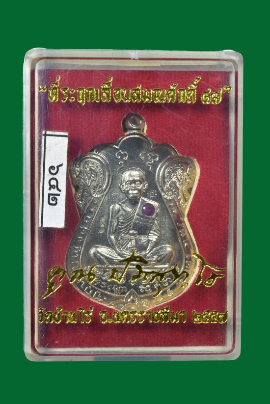 วัดใจ เหรียญเสมาเลื่อนสมณศักดิ์ หลวงพ่อคูณ วัดบ้านไร่ ปี 2557 เนื้ออัลปาก้าฝังพลอย ตอกโค้ด และหมายเลข ๖๔๒ พร้อมกล่องเดิมๆ |