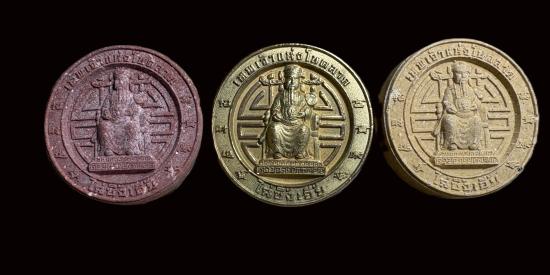 7 องค์ เหรียญเทพเจ้าไฉ่ซิงเอี้ย เทพเจ้าแห่งโชคลาภ พิมพ์ใหญ่ รุ่นปลดหนี้ วัดเล่งเน่ยยี่ ปี 2545 พร้อมกล่องเดิมจากวัด |