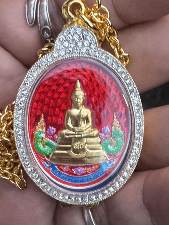 เหรียญหลวงพ่อโสธร เนื้อเงินลงยาแดงมาสเตอร์พีชหน้ากากทองคำแท้ เลี่ยมกรอบทองอิตาลีพร้อมสร้อย(กรอบและสร้อยไม่ใช่ทองแท้นะครับ) รุ่นประวัติศาสตร์ ครบรอบ 255 ปี หมายเลข 87