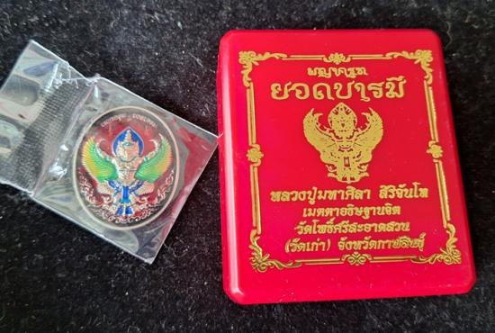 เหรียญพญาครุฑ หลวงปู่ศิลา วัดโพธิ์ศรีสะอาด รุ่นยอดบารมี ลังนำฤกษ์ เนื้ออัลปาก้า ลงยาทรงเครื่อง ลงยาปีกครุฑ No.5 |