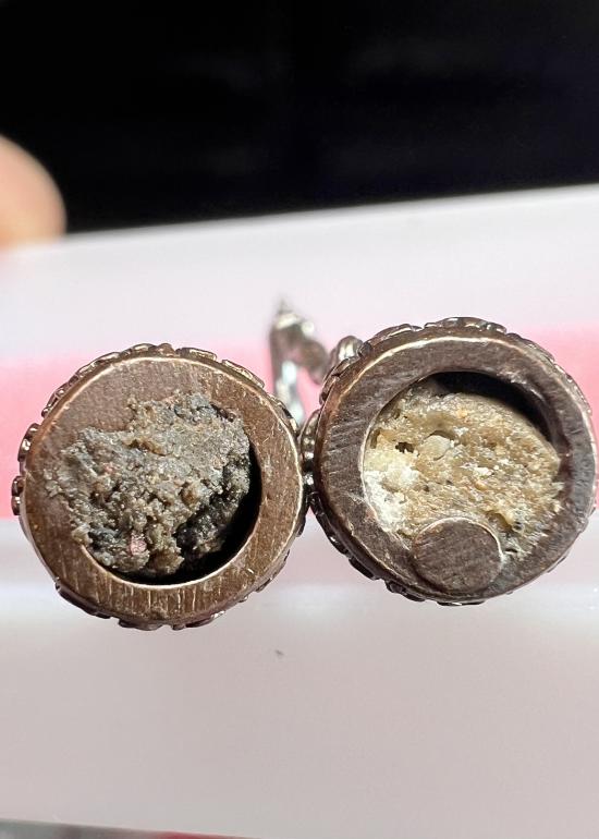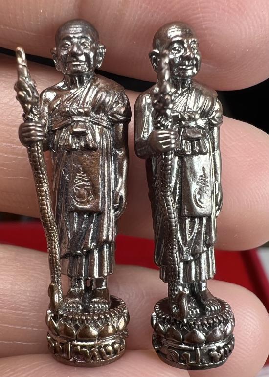 รูปหล่อยืนถือไม้เท้า อุดผงใต้ฐาน หลวงปู่หงษ์ พรหมปัญโญ สุสานทุ่งมน จ.สุรินทร์ ปี 2555 D2 |