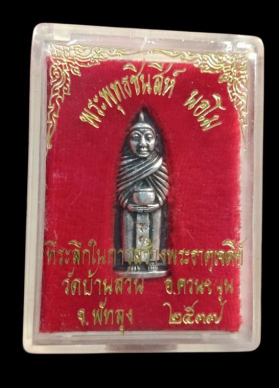 พระพุทธชินสีห์ นอโม วัดบ้านสวน พัทลุง ปี 37 (เนื้อเงิน) สร้างน้อยหายาก พร้อมกล่องเดิมจากวัด |