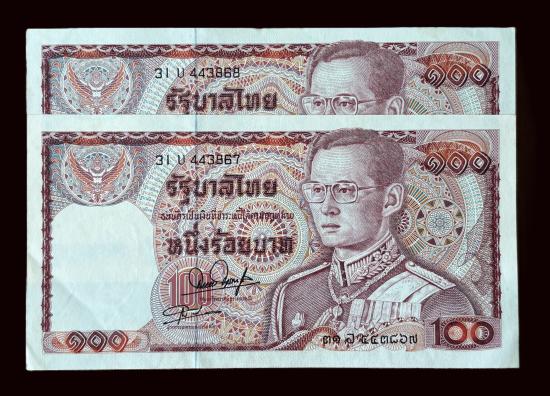 แบงค์ 100 บาท แบบ 12 เลขเหลี่ยม 6 หลัก เลขติดกัน ไม่ผ่านใช้ 31 U 443867-443868