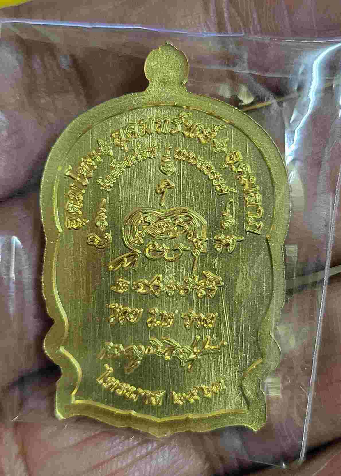 เคาะเดียวแดง เหรียญหลวงพ่อพัฒน์ รุ่นไตรมาส 63 พิมพ์นั่งพาน เนื้อชุบทองโบราณ |