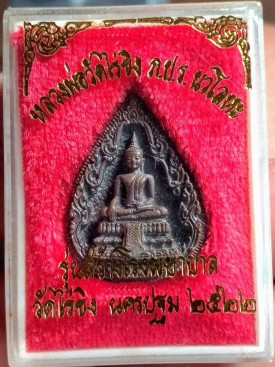 เคาะเดียวแดง.....เหรียญหลวงพ่อวัดไร่ขิง หลังภปร เนื้อนวะโลหะ รุ่นสร้างโรงพยาบาล วัดไร่ขิง จังหวัดนครปฐม ปี 2522 พร้อมกล่องเดิม |