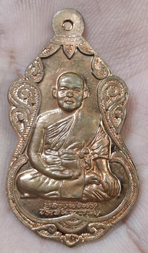 เหรียญน้ำเต้า พระอาจารย์สมพร ถาวโร วัดจันทาราม ปทุมธานี เนื้อทองแดงหลังเรียบ จารมือ |
