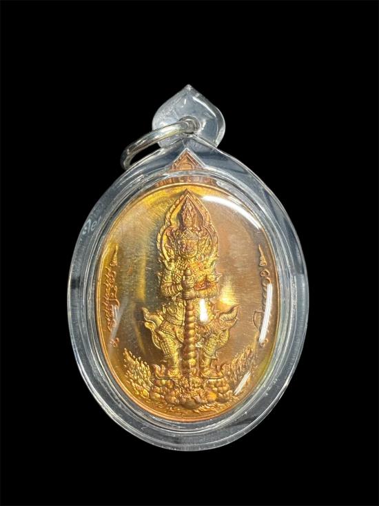 เหรียญท้าวเวสสุวรรณ จาตุมหาราชิกา ครูบาจันทร์ วัดน้ำแป้ง จ.พะเยา รุ่นแรก ปี 58 เนื้อทองแดง หมายเลข ๒๖๗๖