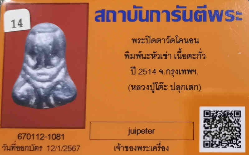 ชื่อพระเครื่อง ชุดคัดสวย ! พระปิดตาหลวงปู่เอี่ยม วัดหนัง ออกวัดโคนอน จัดสร้างปี พ.ศ.2514-2515 (หลวงปู่โต๊ะ ร่วมปลุกเสก)#14