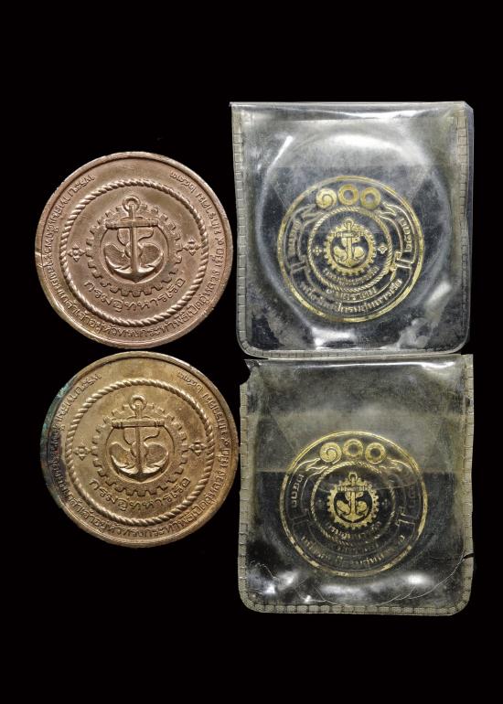 ชื่อพระเครื่อง *เคาะเดียว* เหรียญกรมอู่ทหารเรือ 100 ปี กรมอู่ทหารเรือ ปี2533 ((( เนื้อทองแดง ขนาด 4 ซม. ))) 2 เหรียญ