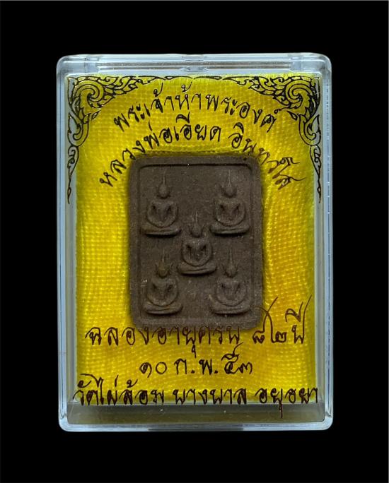 วัดใจ พระเจ้าห้าพระองค์ เนื้อผง ฝังตะกรุดเงิน + เกศา หลวงพ่อเอียด วัดไผ่ล้อม จ.อยุธยา ปี53 |