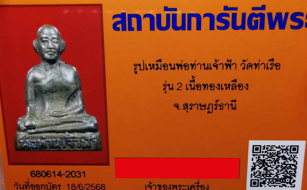 รูปเหมือนพ่อท่านเจ้าฟ้า วัดท่าเรือ รุ่น2 เนื้อทองเหลือง จ.สุราษฎร์ธานี + บัตรG-pra สภาพเดิมค่ะ สภาพตามรูปทุกประการค่ะ