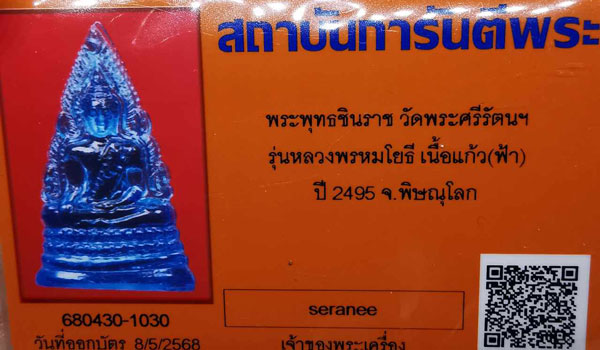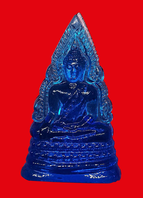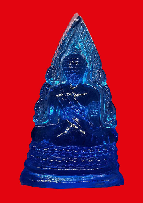 พระพุทธชินราช วัดพระศรีรัตนฯ รุ่นหลวงพรหมโยธี เนื้อแก้ว(ฟ้า) ปี2495 จ.พิษณุโลก + บัตร G-pra สภาพสวยเดิมค่ะ สภาพตามรูปทุกประการค่ะ