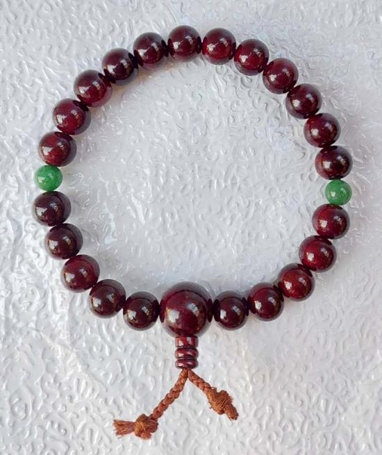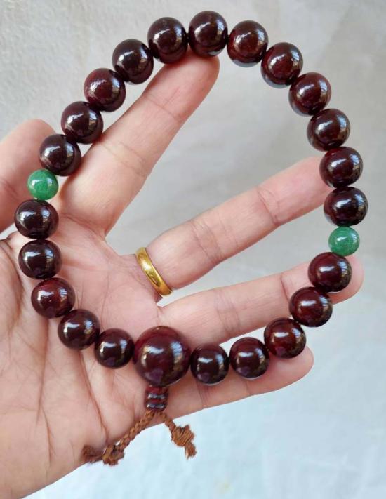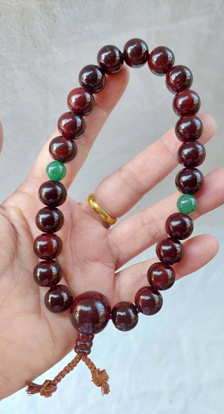 รายละเอียด ***วัดใจ***ประคำข้อมือไม้จันทน์ลายเสือ กับ หยก 15 มิล สวยๆงาน