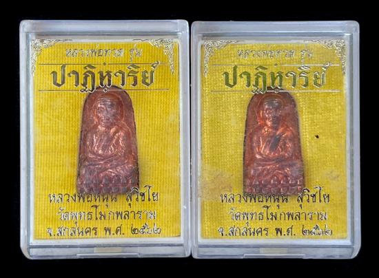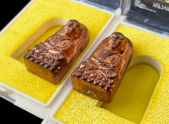 วัดใจ 2 องค์ หลวงพ่อทวด พิมพ์พระรอด รุ่น ปาฏิหาริย์ หลวงพ่อหนุน วัดพุทธโมกพลาราม จ.สกลนคร เนื้อทองแดง กล่องเดิม