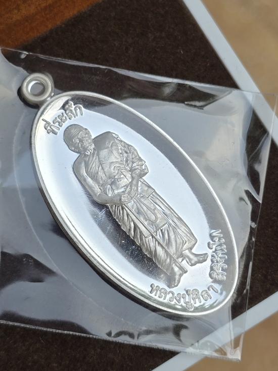 เหรียญ ยืน3 ใบขี้เหล็ก อายุวัฒนมงคล81ปี หลวงปู่มหาศิลา หลวงปู่ศิลา สิริจันโท ธรรมอุทยาน วัดพระธาตุหมื่นหิน จ.กาฬสินธุ์ เนื้อเงิน เลข ๑๐๓๗ มีกล่องเดิม