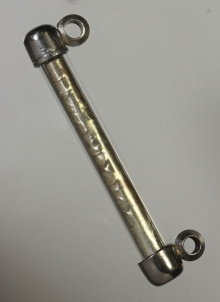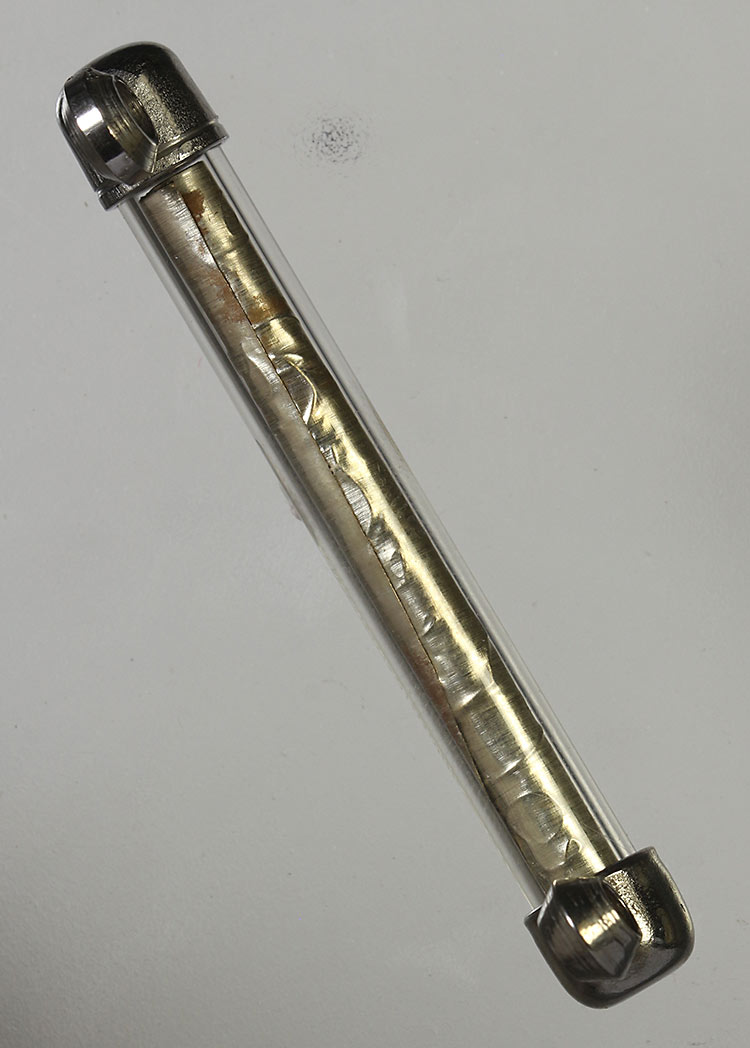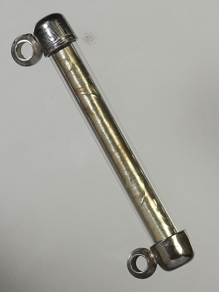 วัดใจ**เครื่องราง ตะกรุดปลดหนี้หรือตะกรุดกันผี กันคุณไสย แผ่นเงิน จารยันต์ด้วยมือ หลวงปู่กาหลง เขี้ยวแก้ว ความยาว 4 ซม. ใส่หลอด...พร้อมซองเดิมๆครับ