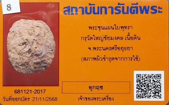 พระขุนแผนใบพุทรา กรุวัดใหญ่ชัยมงคล เนื้อดิน จ.พระนครศรีอยุธยา พร้อมบัตรรับรองจากจีพระ