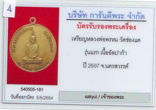หลวงพ่อพรหม วัดช่องแค รุ่นแรก ปี07 เนื้ออัลปาก้า พร้อมใบการันตี