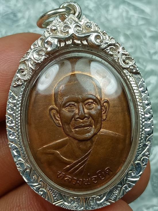 เหรียญแอ่งกระทะรุ่น2 อิสั้น หลวงพ่อยิด วัดหนองจอก เนื้อทองแดงผิวไฟ ปี2533 จ.ประจวบคีรีขันธ์ สวยเดิมๆ พร้อมเลี่ยมเงินงานมืออย่างดี