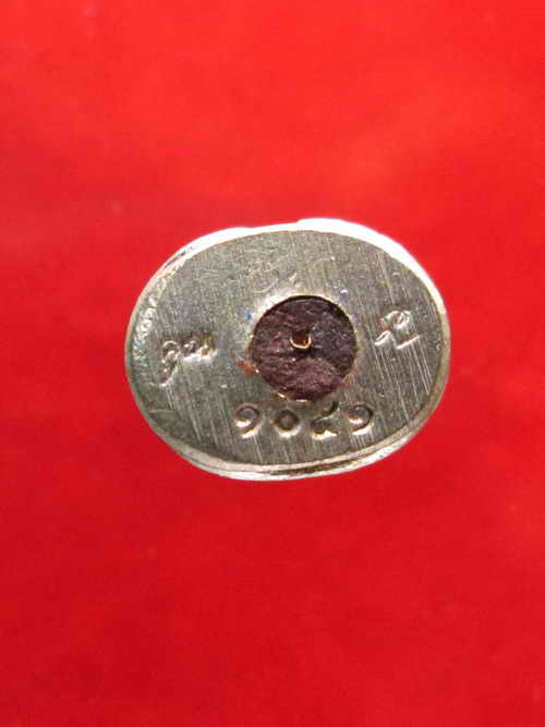 -เนื้อสัมฤทธิ์ผิวเงิน ฝังตะกรุดทองคำอุดผงเขี้ยวหนุมาน หมายเลข ๑๐๕๑ (สร้างเนื้อเดียว)