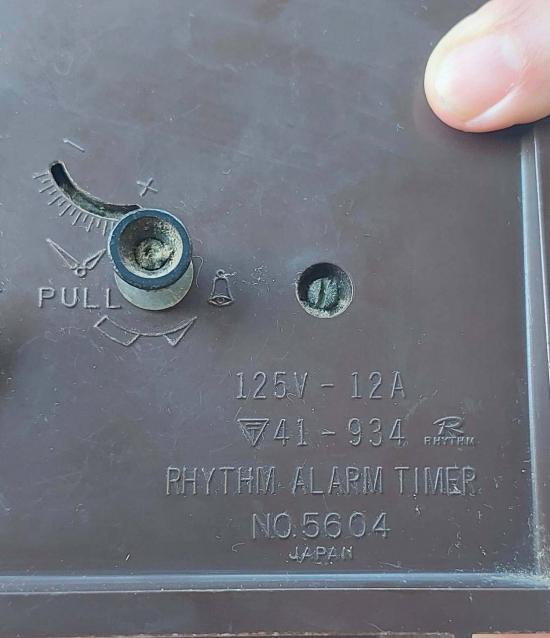นาฬิกาวินเทจไขลาน มีฟังชั้นตั้งเวลาเปิด-ปิด ที่สามารถต่อเครื่องใช้ไฟฟ้าชิ้นอื่นผ่านปลั๊กด้านข้าง |