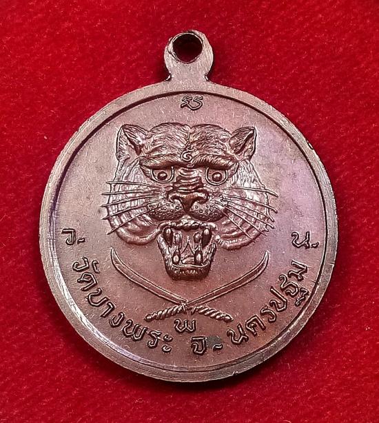 เหรียญ กลมหลวงพ่อเปิ่น วัดบางพระ นครปฐม หลังหน้าเสือ ดาบไขว้ ปี 2536 |