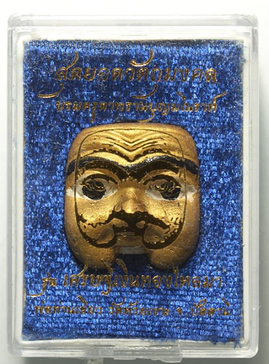 หน้ากากบรมครูตาพรานบุญมโนราห์ สุดยอดวัตถุมงคล เนื้อผงพุทธคุณ หน้าทอง รุ่นเศรษฐีเงินทองไหลมา พ่อท่านเขียว กิตฺติคุโณ วัดห้วยเงาะ จ.ปัตตานี ปี 2562 |