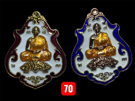 แยกชุดกรรมรับพระ 2 องค์ เหรียญโภคทรัพย์ ลพ สาคร ปี 2552 เนื้อกะไหล่ทอง ลงยาแดง+กะไหล่นาค ลงยาน้ำเงิน หายากมากเพราะสร้างไว้ในเฉพาะในชุดกรรมการที่มีเพียง 300 เท่านั้น เลข 70