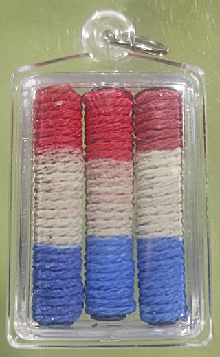 ตะกรุดลายธงชาติ 3 ดอกพร้อมเลี่ยม ยาว 3.5 ซม. สวยๆไม่ทราบที่ครับ