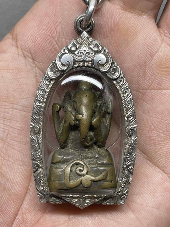 พระพิฆเนศ หล่อโบราณ เลี่ยมเงินหนา