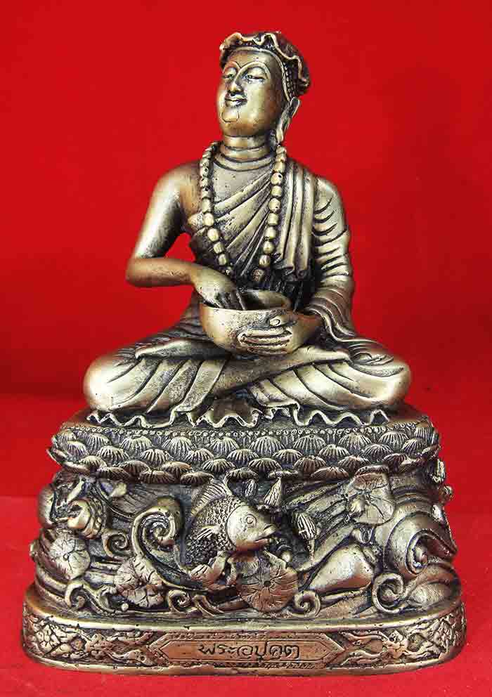 พระอุปคุตเถระฐานพญานาคราชในเกษียรสมุทร พระแห่งโชคลาภและคุ้มกันภัยทั้งปวงจกบาตรเงยหน้าหยุดตะวัน หลวงพ่อทองสุข วัดหนองหม้อ