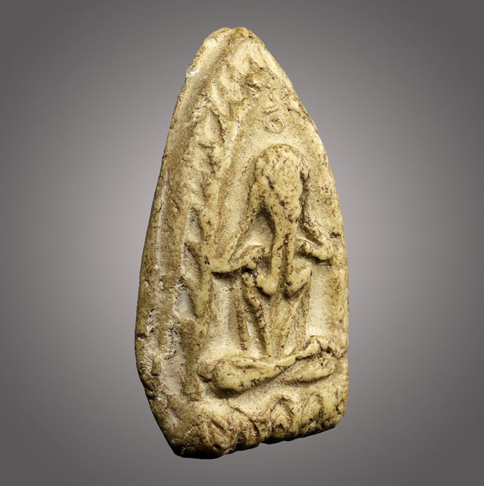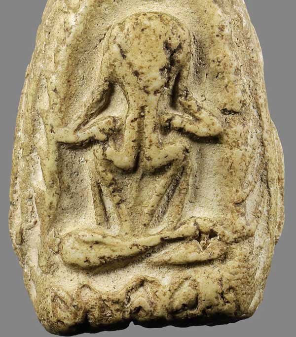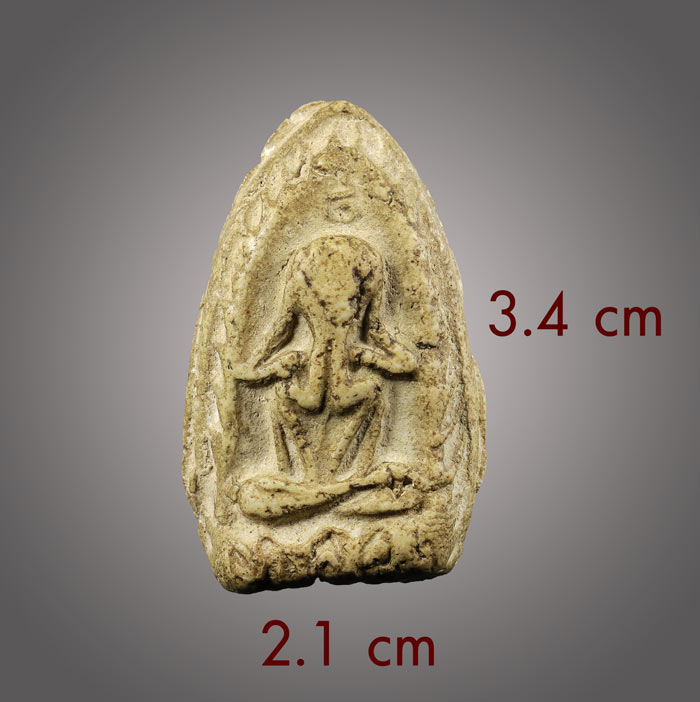 พระปิดตา เนื้อผง โซนขาว (ไม่ทราบที่) สภาพเนื้อหาเก่ามีอายุ ขนาดพระ ฐาน 2.1cm สูง 3.4 cm |