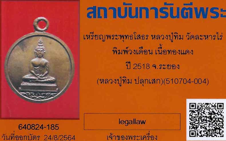 พระพุทธโสธร หลวงปู่ทิม ผิวไฟร้อนแรง วงเดือน(นิยม)+บัตรรับรองพระแท้*77