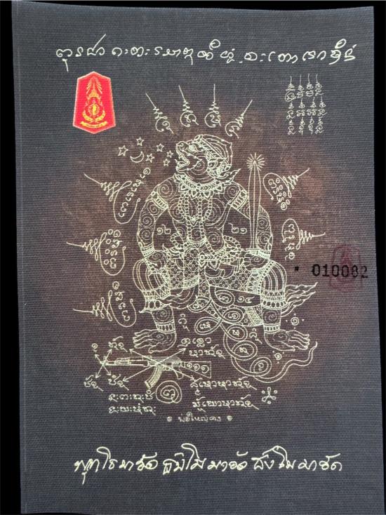 เคาะเดียว 200 ผ้ายันต์พหูรมานสีดำ no.010082 แม่ทัพภาคที่2.ทำแจกทหารชายแดนรอบที่2.หลวงปู่เมตตาอฐิฐานจิตเสกเดี่ยวอย่างเข้มขลัง(ผ้าแคนวาสสกรีนตรากองทัพภาคที่2)รันเลขนัมเบอร์พร้อมประทับหมึกเเดงตรากองทัพ