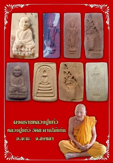 หลวงปู่แก้ว วัดสะพานไม้แก่น สงขลาพระปางประทานพรเนื้อผงพุทธคุณผสมผงพรายหลังพญานาคราช ชุดที่ 1 เนื้อขาว+เนื้อแดง+ลูกอม