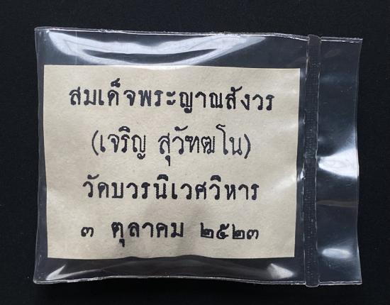 พระปิดตายันต์ดวงเล็ก ปี2523 สมเด็จพระญาณสังวร (เจริญ) วัดบวรนิเวศ_(เนื้อทูโทน_หน้าเกสร~หลังใบลาน)_ซีลถุงเดิม_มีใบโพย_ |