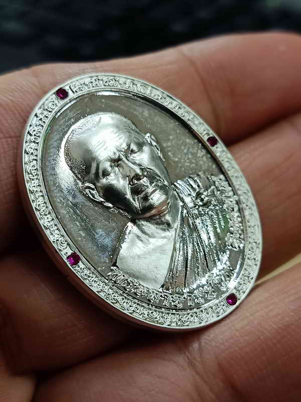 วัดใจ 100 เหรียญรวยมหาเศรษฐี กฐินสามัคคี พระอาจารย์นก วัดเขาบังเหยชุมพลสีมาราม อ.เทพสถิต จ.ชัยภูมิ ปี 2566 รก.33 ชุบเงินจิวเวอรี่ ฝังพลอยแดง หมายเลข 103 กล่องเดิม |