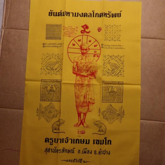 ผืนใหญ่......(ขนาด 22 X 33 นิ้ว) ผ้ายันต์มหามงคลโภคทรัพย์ หลวงพ่อเกษม เลข 1260 ..68.11.26 |