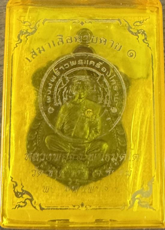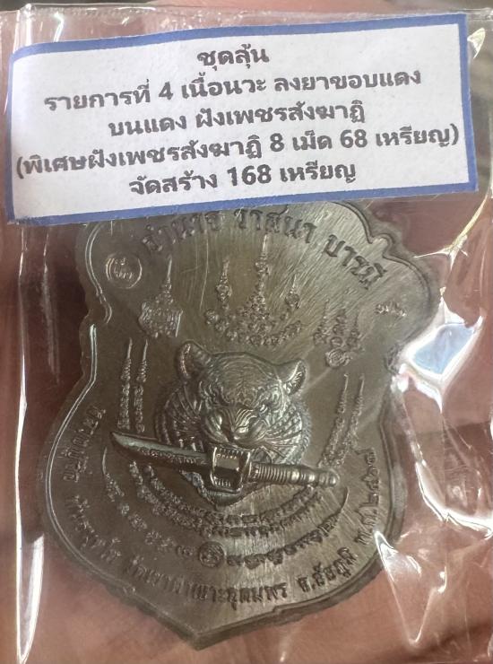 เหรียญ หลวงปู่จื่อ พนฺธมุตโต รุ่นเสือคาบดาบ เนื้อนวะลงยาขอบฝังเพชร หมายเลข76 มีกล่องครับ