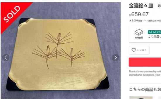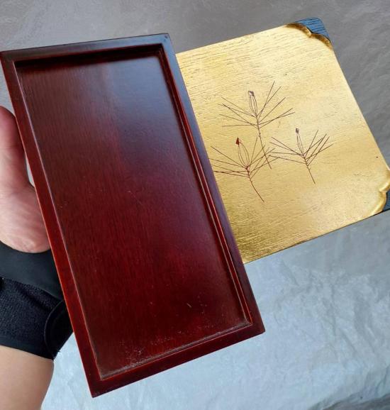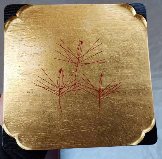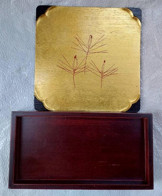 งานสี่เหลี่ยมจัตุรัส ขอบโค้งมน งานไม้ เคลือบด้วยทองคำเปลวแบบญี่ปุ่น ขนาด ย 19 x ก 19 cm.