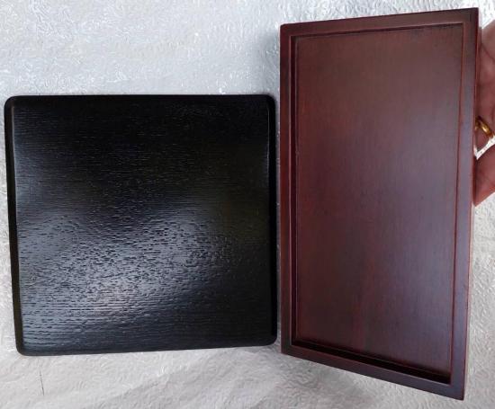 กี๋น้ำชา (ถาดรองแก้วน้ำถวายพระ) เนื้อไม้ 2 แบบ งานญี่ปุ่นมือ2