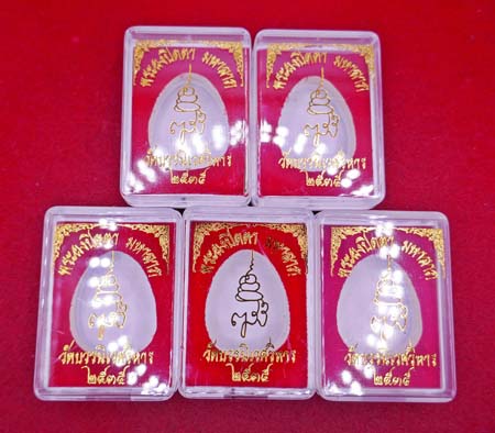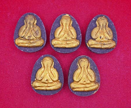 !!!!วัดใจ 9 บาท!!!! 5 องค์ พระผงปิดตา มหาลาภ ญสส วัดบวรนิเวศวิหาร พ.ศ.2535 เนื้อผงใบลาน(ดำ) ปัดทอง กล่องเดิม |