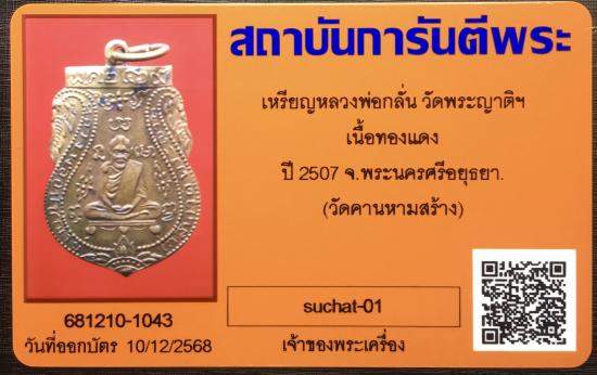 เหรียญหลวงพ่อกลั่น วัดพระญาติฯ เนื้อทองแดง ปี 2507 จ.พระนครศีอยุธยา วัดคานหามสร้าง |