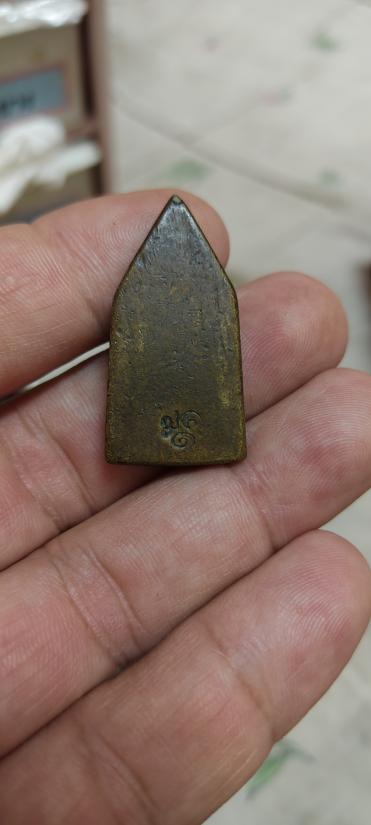 พระพุทธชินราช ท่านเจ้าคุณศรี(สนธิ์) วัดสุทัศน์องค์นี้หลังเรียบ ตอก ม.ค.๑เหรียญมีรูปทรง 5 เหลี่ยม ขนาด 1.5 X 3.3 c.m. เนื้อทองผสม วรรณะออกเหลือง-แดง สภาพใช้